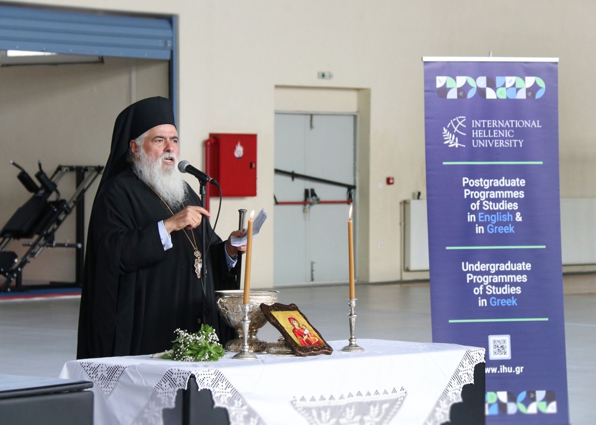 Τη Δευτέρα, 29/9/2025, τελέστηκε ο αγιασμός για την έναρξης της νέας ακαδημαϊκής χρονιάς, χοροστατούντος του Μητροπολίτη Νεαπόλεως και Σταυρουπόλεως Βαρνάβα, στο νέο Πανεπιστημιακό Γυμναστήριο του Διεθνούς Πανεπιστημίου της Ελλάδος, στη Σίνδο.