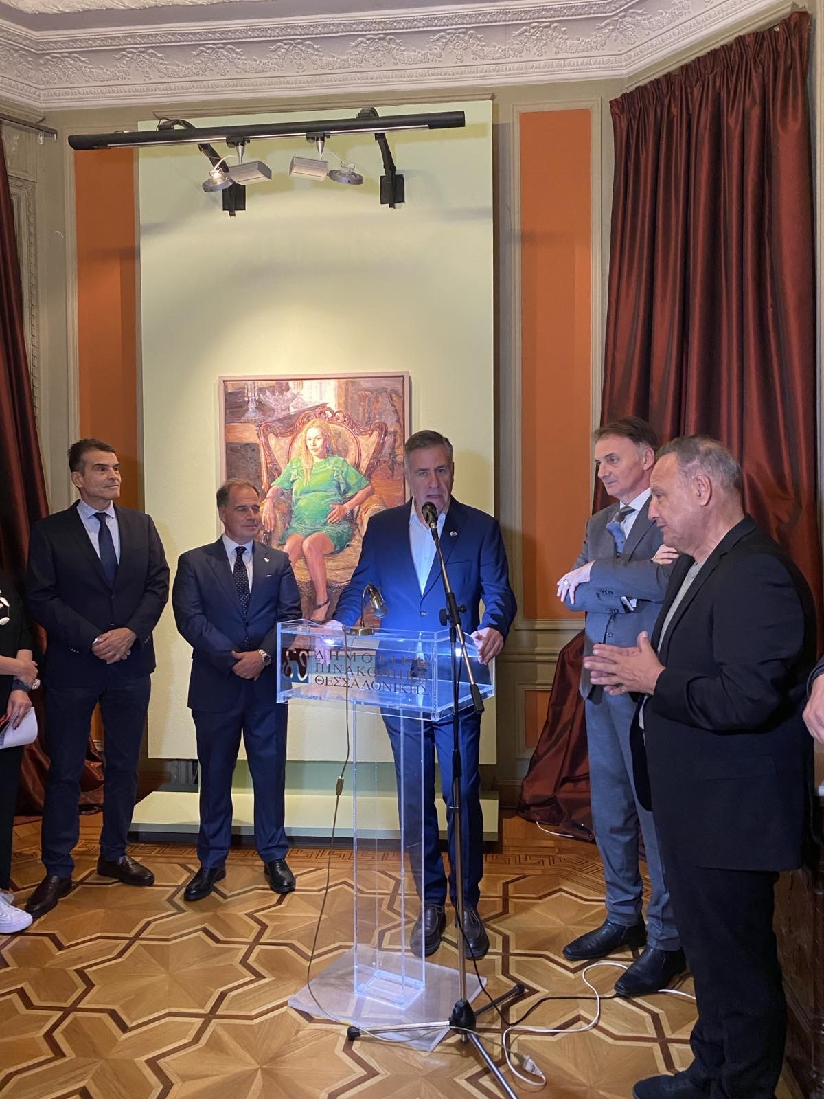 Από την πλευρά του ο δήμαρχος Θεσσαλονίκης, Στέλιος Αγγελούδης έκανε λόγο για μία εξαιρετική ευκαιρία να ενώσουν τις δυνάμεις τους, Δήμος και Ακαδημαϊκή Κοινότητα με σκοπό να προσφέρουν στο κοινό τη δυνατότητα να κατανοήσει πόσα πολλά οφέλη μπορεί να αποδώσει στην κοινωνία η συνεργασία και η συμπόρευση τοπικών φορέων. «Αφορμή στάθηκε το μνημόνιο συνεργασίας που υπογράφηκε μεταξύ Διεθνούς Πανεπιστημίου της Ελλάδος και Δήμου Θεσσαλονίκης το 2024, με σκοπό την ενδυνάμωση και τον σχεδιασμό κοινών δράσεων και αμοιβαίων συνεργειών στον τομέα της εκπαίδευσης και της δια βίου μάθησης. Στο πλαίσιο αυτό εντάσσεται και η μεγάλη αυτή έκθεση, που αποσκοπεί στο να προσφέρει στους πολίτες τη δυνατότητα γνωριμίας με έργα σύγχρονων Ελλήνων καλλιτεχνών, αλλά και την επαφή τους με τους ίδιους» σημείωσε ο κ. Αγγελούδης ευχαριστώντας τον Πρύτανη του ΔΙΠΑΕ, Σταμάτη Αγγελόπουλο και τον κ. Κοτζαϊβάζογλου.