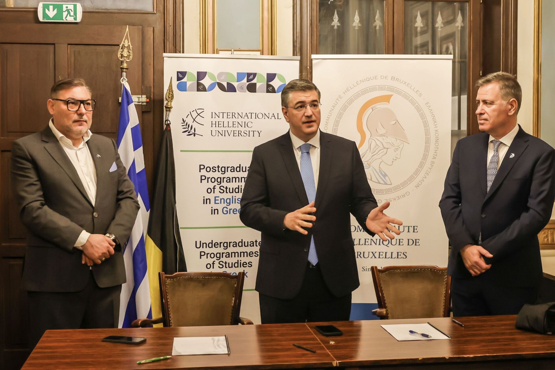 Το καλωσόρισμα στο υπό ίδρυση παράρτημα του Διεθνούς Πανεπιστημίου της Ελλάδος (ΔΙΠΑΕ) στις Βρυξέλλες έκαναν χθες στις Βρυξέλες στον Πρύτανη, καθηγητή Σταμάτη Αγγελόπουλο και στην αντιπροσωπεία του Πανεπιστημίου, ο Επίτροπος της Ελλάδας στην ΕΕ Απόστολος Τζιτζικώστας και τα μέλη της τοπικής Ελληνικής Κοινότητας.