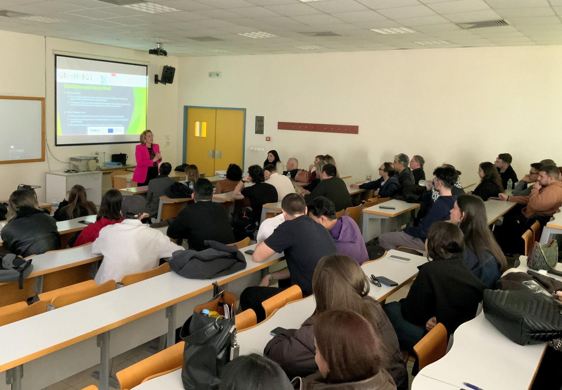 Η ομιλήτρια παρουσίασε, μεταξύ άλλων, τα πλεονεκτήματα και τις προκλήσεις της εφαρμογής των συστημάτων φύτευσης σε κτηριακά έργα, θέματα αντισεισμικής ενισχύσεις κτηρίων από οπλισμένο σκυρόδεμα, τα αποτελέσματα των πειραμάτων σε σεισμική τράπεζα που διενεργήθηκαν για την αξιολόγηση της συμπεριφοράς κατασκευής με εφαρμογή συστημάτων κάθετων δασών, καθώς και τεχνολογίες ελέγχου της δομικής ακεραιότητας κατασκευών με χρήση ευφυών αισθητήρων.